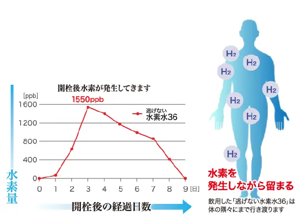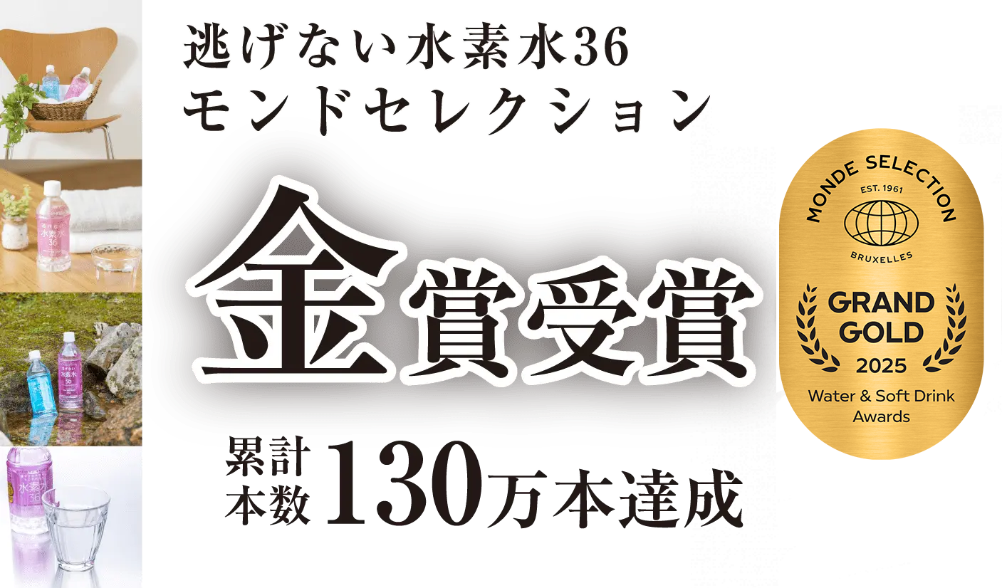 逃げない水素水36は、2つの大学研究室と提携し、証データに基づく共同研究商品です。世界で唯一の誰も真似する事が出来ない水素包含水です。日本機能水学会等でも研究成果を発表させて頂きました。