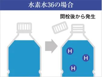 従来の水素水の製造方法は、水素ガスのバブリングが主流でした。しかし当社では、水に水素ガスを溶けさせるのではなく、世界で唯一の特許技術を用いてつくっており、開栓後に水素が発生するため、ペットボトルでの販売を実現できたのです。