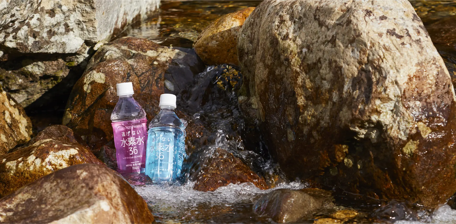 今話題の「水素」。奥長良川名水では、持ち運びがしやすくいつでも水分補給が可能なペットボトルでの販売を実現しました。